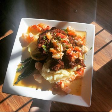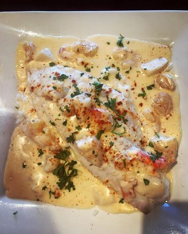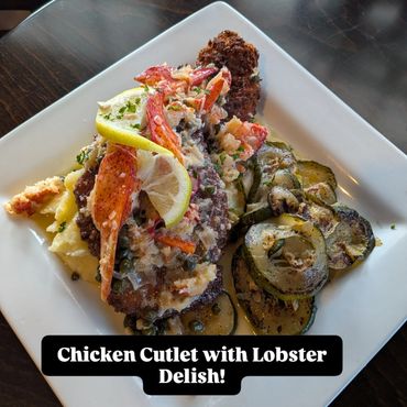 Panko-breaded chicken breast topped with sweet lobster meat sautéed in a lemon caper beurre blanc over garlic mashed potatoes. Served with the vegetable of the day 38