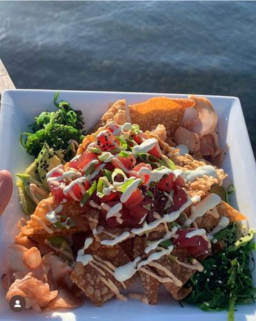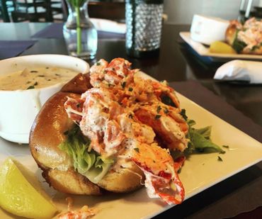 Chilled lump lobster meat lightly dressed and served in a warm buttery roll with french fries.